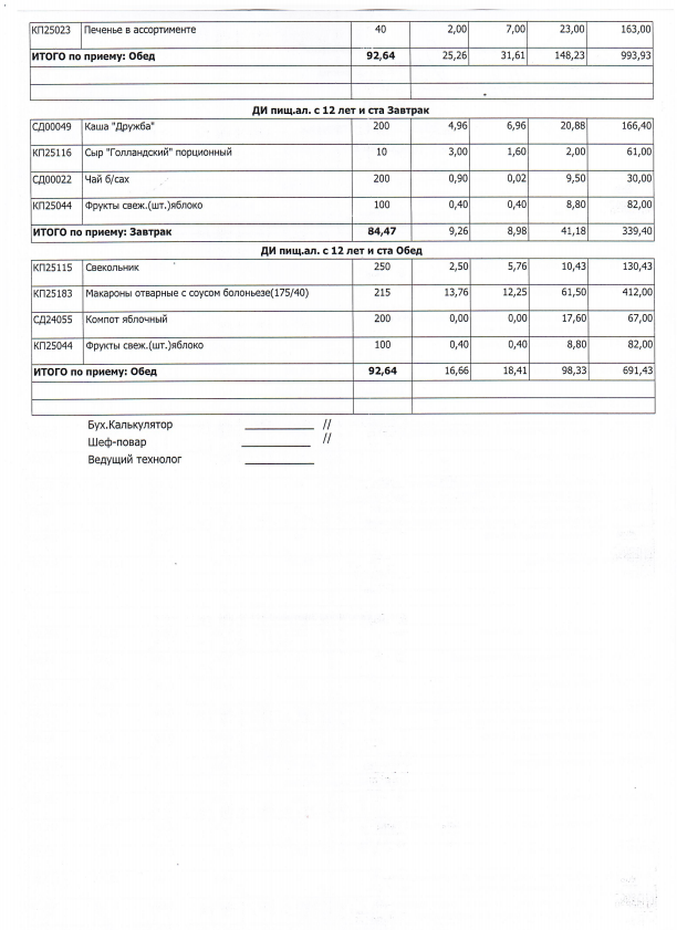 Примерная стоимость питания в плановом двухнедельном меню (посмотреть)